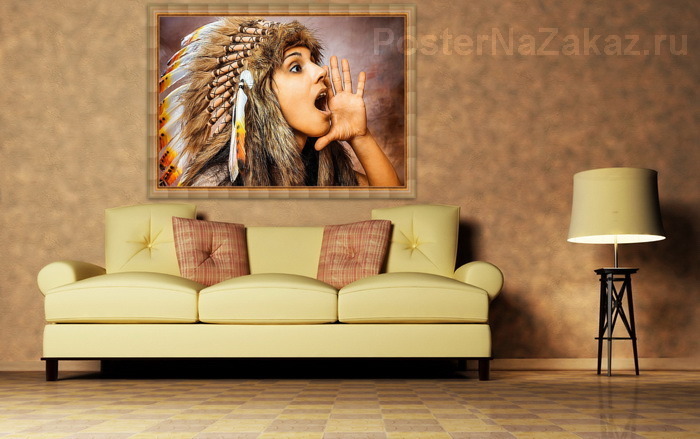 Головной убор тихоокеанского аборигена пришёлся кстати симпатичной девушке. Ей необходимо донести важную новость до слушателя. Порой это непросто. Необходимо докричаться. У индейцев была голосовая почта. Посланец от вождя племени должен был передать