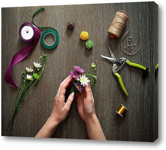 Данная фотокарточка, передает весь спектр деятельности флориста. Работа с цветами, составление композиций, обработка цветка.