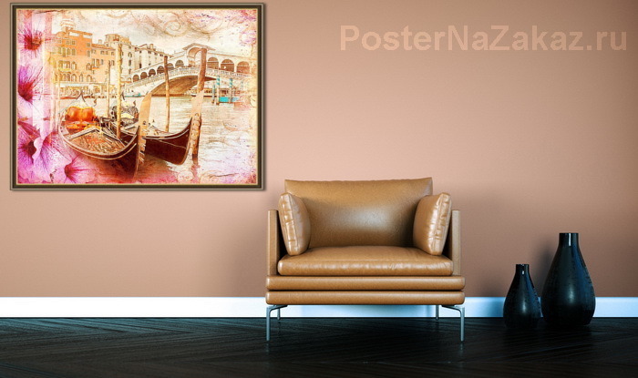 Картина с изображением неповторимой архитектуры Венеции и традиционными гондолами в цветах дополнит и украсит любую комнату. Теплые оттенки добавят уюта любой комнате.