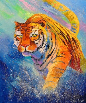 Картина маслом на холсте,картина маслом для интерьера,картина маслом на подарок,живопись,импрессионизм,природа,тигр,животное,эмоции,принт,постер,красивая картина маслом,яркая картина маслом,животное