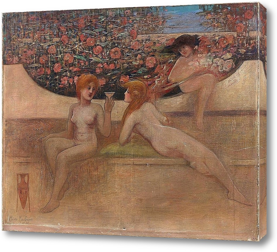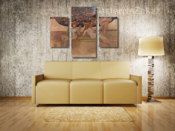Модульная картина Две голые перед стеной, цветы