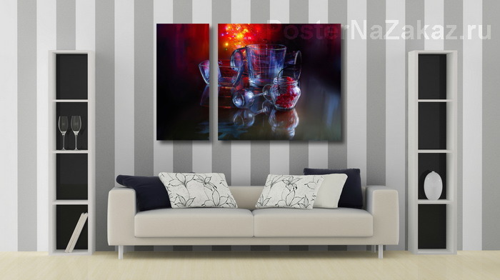 Натюрморт со стеклянными предметами украсит любой уголок вашего дома. Внесет в интерьер яркий акцент.