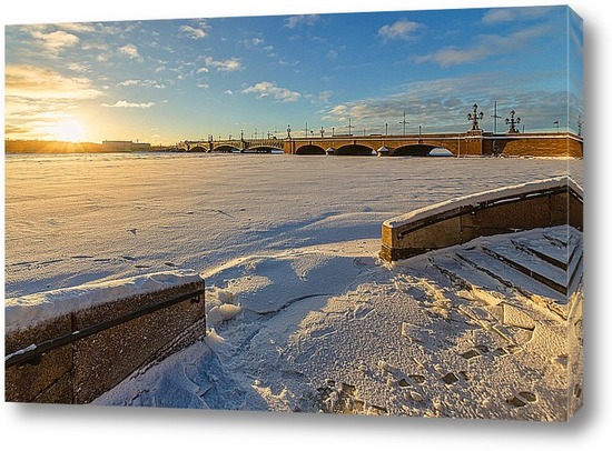 Очень красивый рассвет можно увидеть зимой в Петербурге. Волшебство длится недолго, максимум полчаса. Постарайтесь опередить китайских туристов, и насладитесь красотой и тишиной.