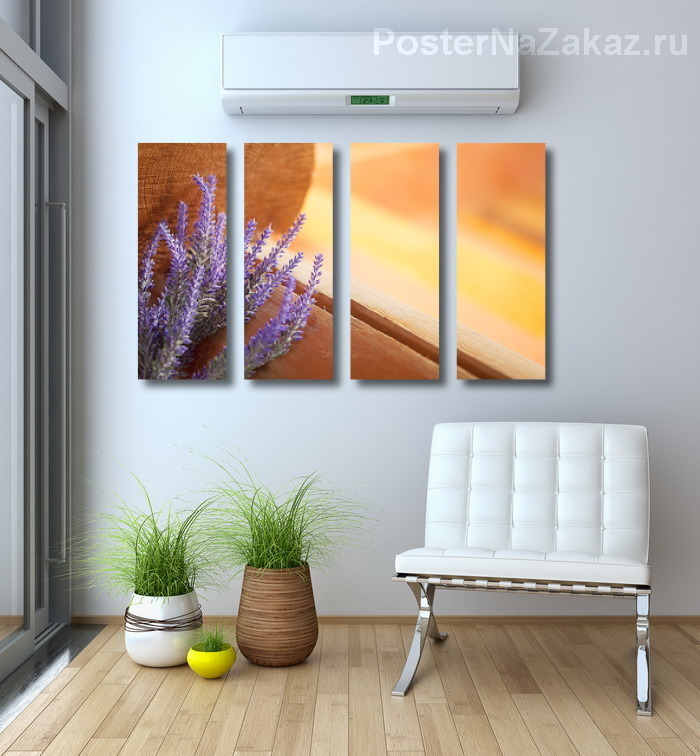 Теплая летняя фотография цветка лаванды на фоне деревянного сруба. Создает ощущение комфорта и теплоты в интерьере