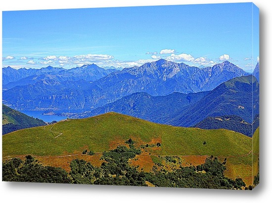 В ясный солнечный день, красиво смотрятся горы, обрамляющее озеро Тичино в Швейцарии.