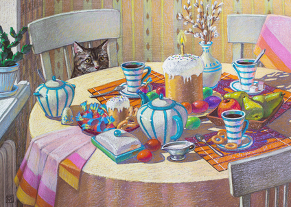 Праздник светлой Пасхи! Интересная графическая работа в сдержанных пастельных тонах украсит интерьер и придаст ему уникальности.