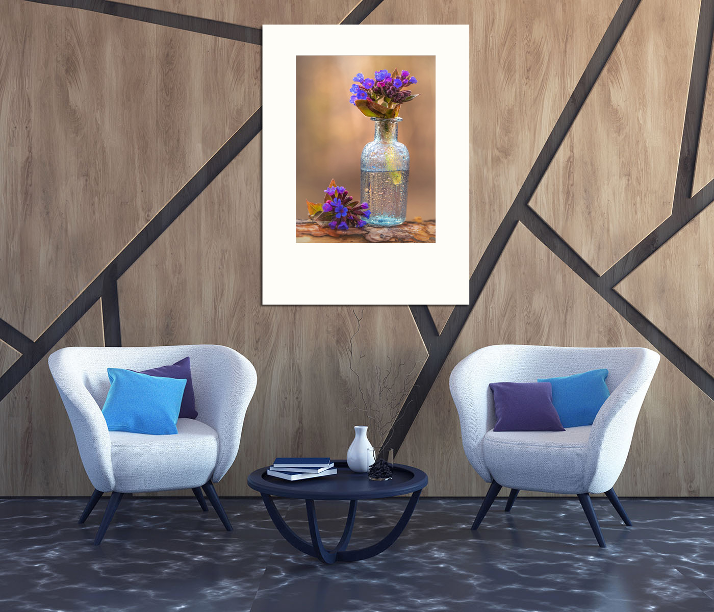 Цветы медуницы в стеклянной вазе