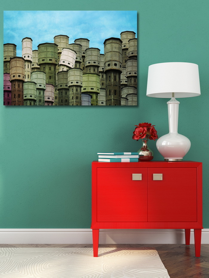 Старые башни - коллаж с повторяющимися сооружениями из которых состоит придуманный сюрреалистический пейзаж.