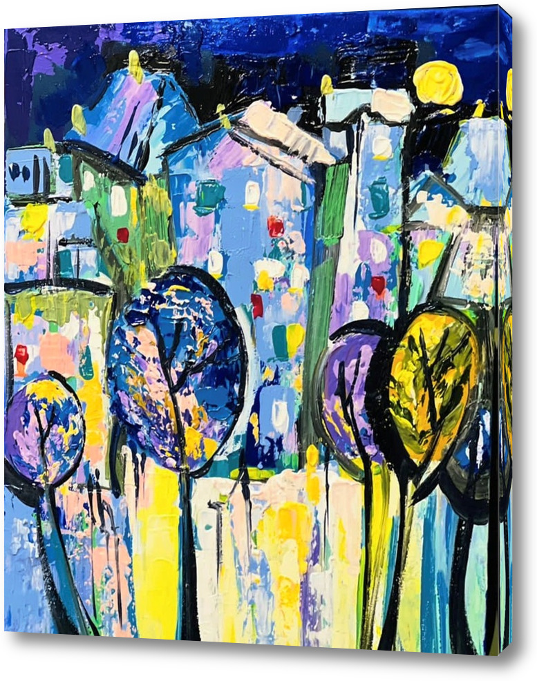 холст 40х50 акрил мастихин. Участница арт-выставки в Сочи в 2023 г. "В синих тонах" Нарядная для интерьера.
