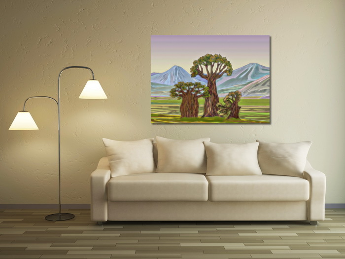 Каркас на который натягивается изображение может быть 2 или 4 см. Это то расстояние на которое изделие будет отступать от стены.