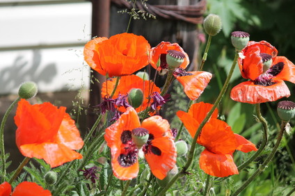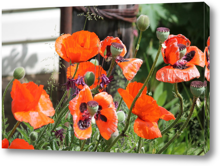 яркие, нежный, дикие маки (цветы), пышно цветут в солнечный летний день