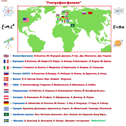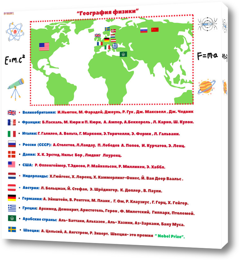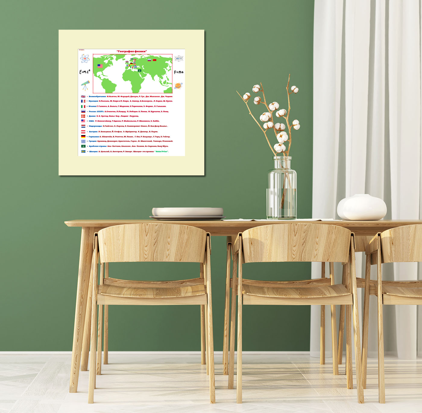 Модульная картина Плакат для кабинета физики " География ученых-физиков"