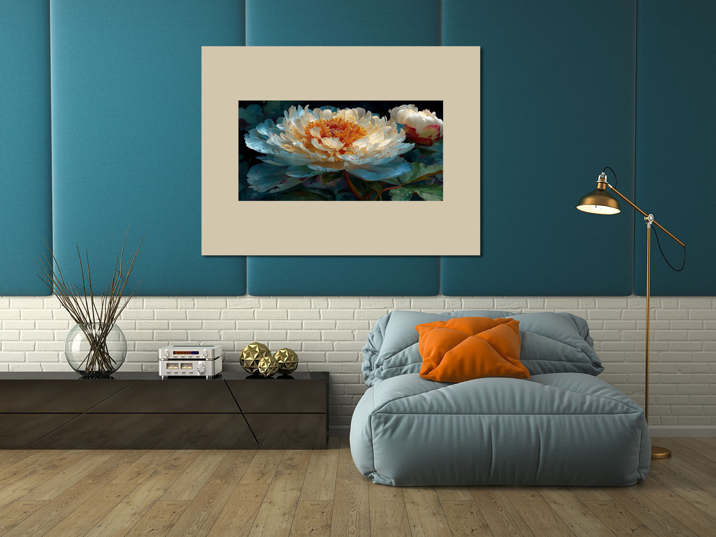 Игра света и тени, переливы кремовых, голубых и оранжевых оттенков, добавят уюта и стиля в интерьер.