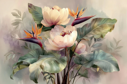 Цветы и тропические листья