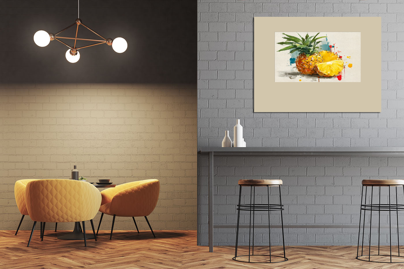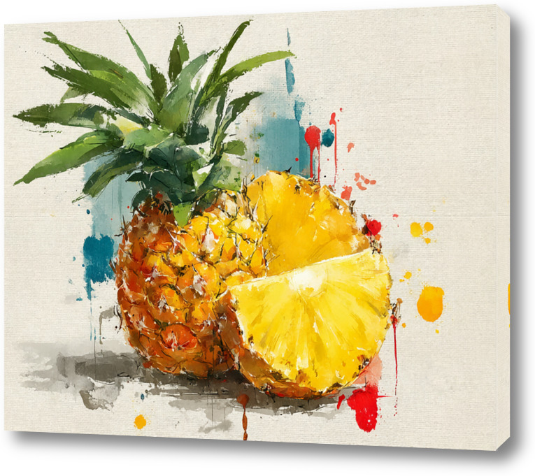 Картина "Ананас в акварельных брызгах"