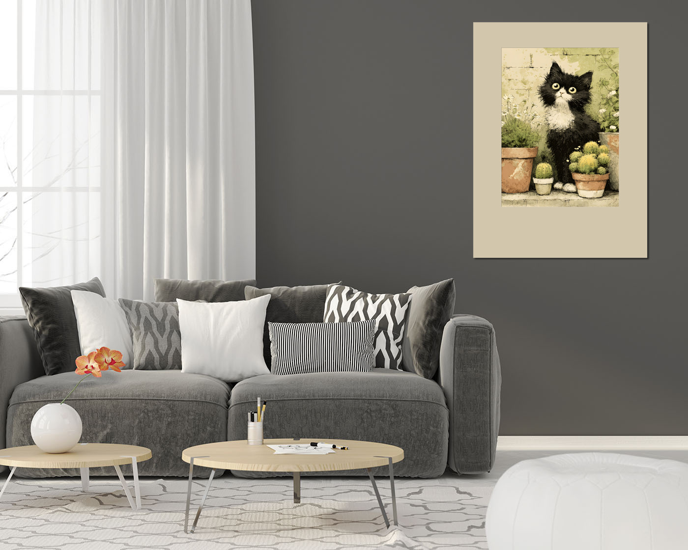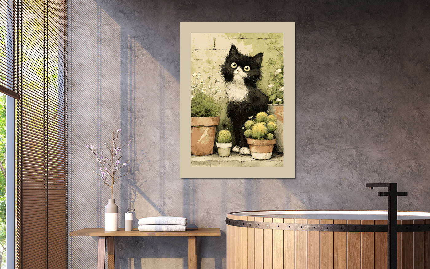 Картина "Кот и кактусы"